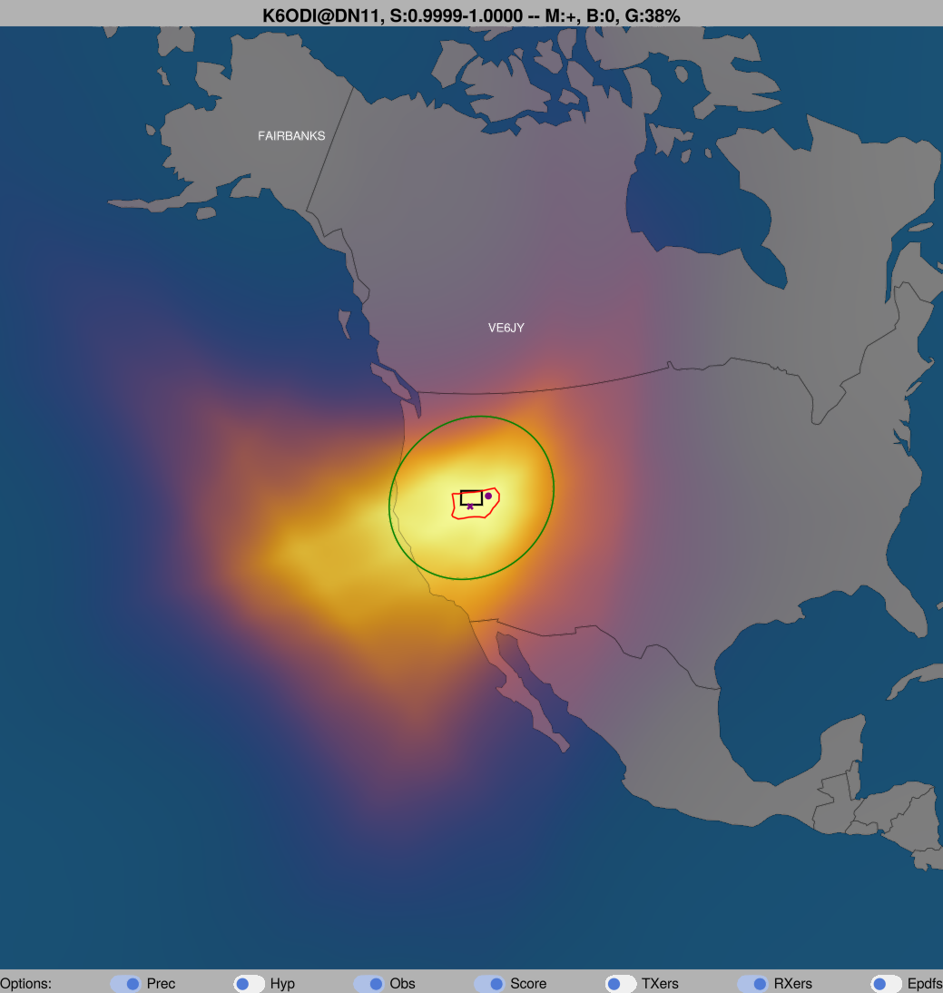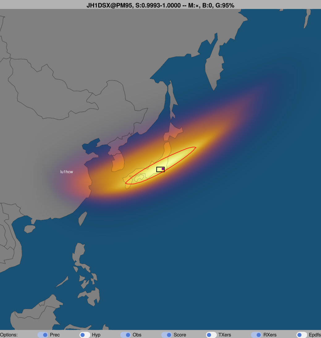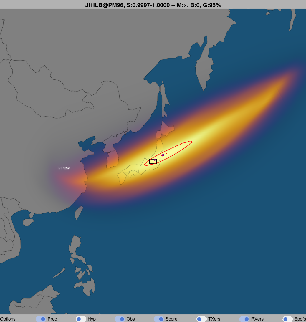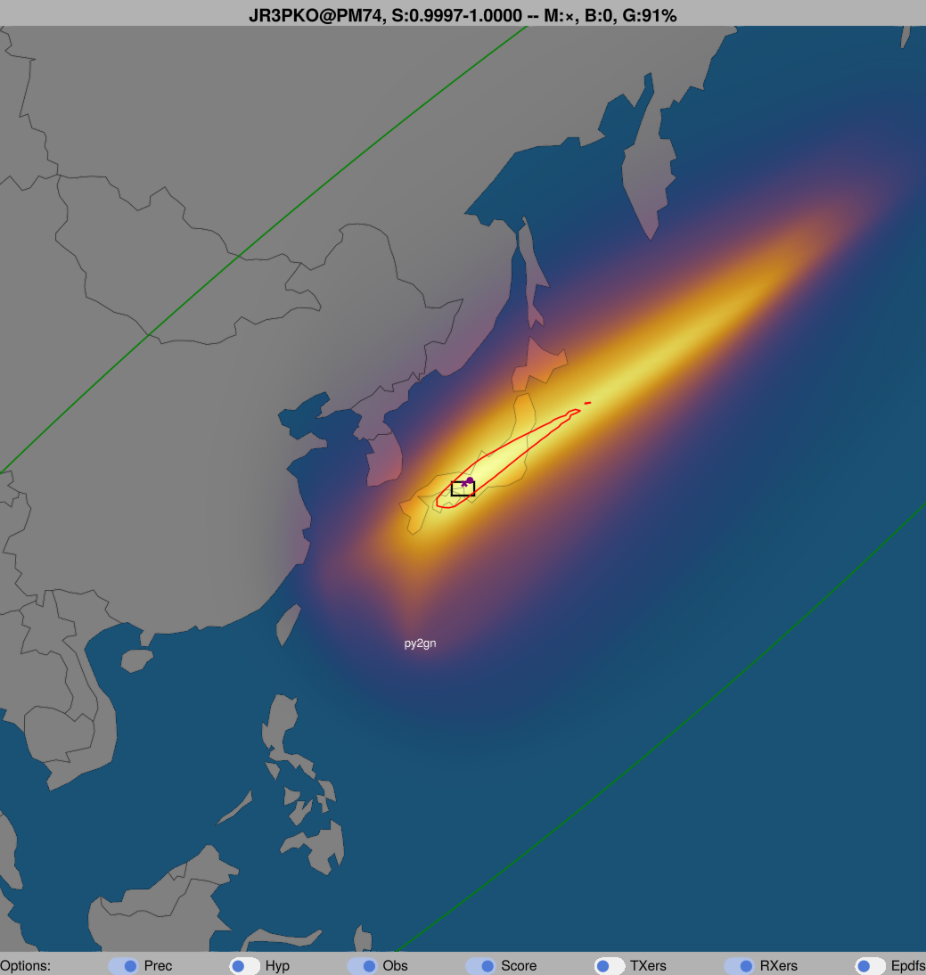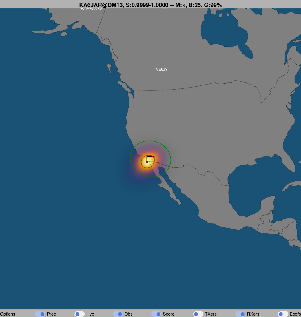 Thought I'd post a bunch of results in a gallery. Note that these were produced using only a handful of receivers - three or four in most cases. But even with so few receivers, more than 99.9% of the earth's surface is ruled out in each instance. Click on the image to get the full-size view.